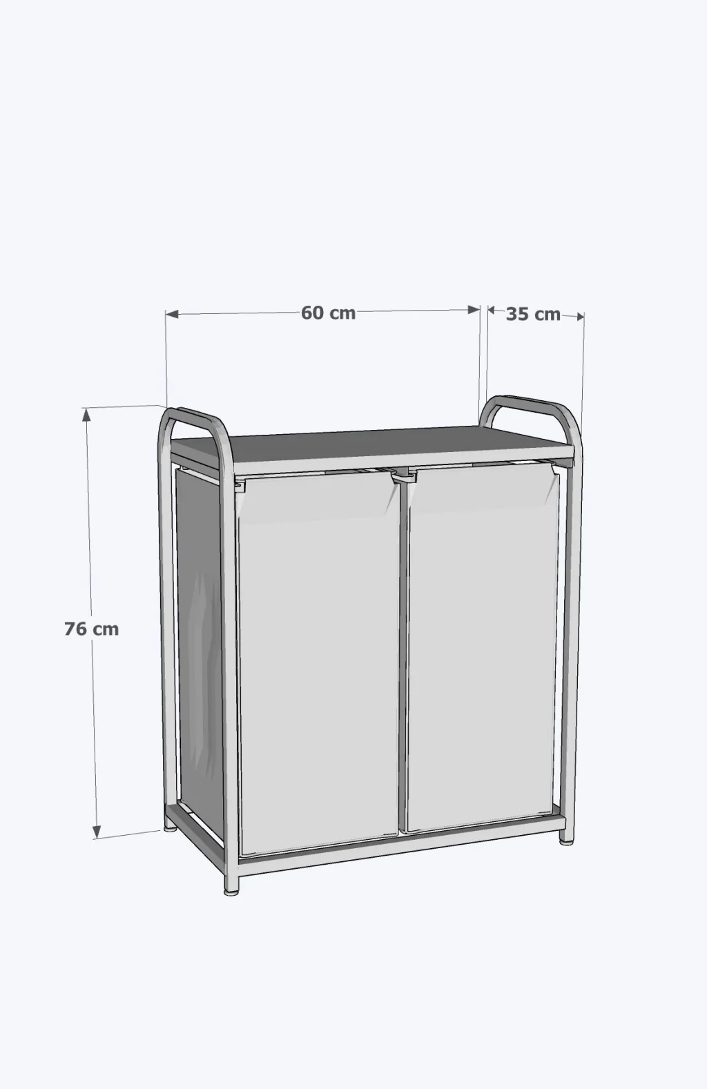 Emsallerine göre daha çok kullanım alanı sağlayan geniş ikili sepetli sürgülü çamaşır sepetli dolap 60+60 toplam 120 Litre kirli sepeti hacmine ve 20KG taşıma kapasitesi olan çamaşır kirli sepetine sahiptir.
