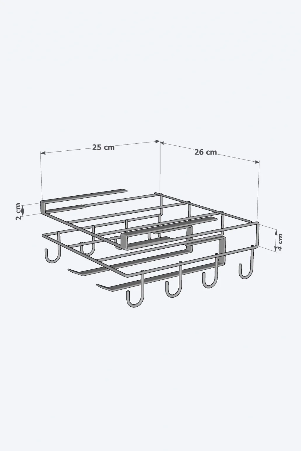 4mm kalınlığında tellerden oluşan askı standımız mutfak rafında sağlam durur ve kesinlikle esneme yapmaz.