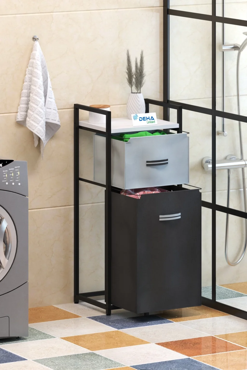 Çamaşır sepeti Raflı dolabın ergonomik tasarımı ve güçlü yapısı ve ayarlanabilir ayakları sayesinde herhangi bir yaylanma ve sallanma gibi herhangi bir olumsuz durum asla yaşatmaz.