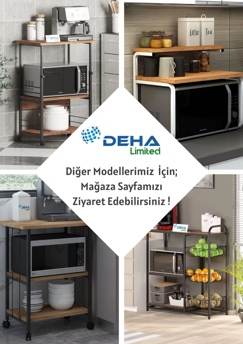 Her evin ihtiyacı olan Bu çok amaçlı masa sehpayı,ister mutfağınızda mikrodalga,fırın, çay,kahve,tost makinelerinizi koyduğunuz bir masa olarak,veya oturma odanızda şık bir toparlayıcı olarak kullanabilirsiniz.