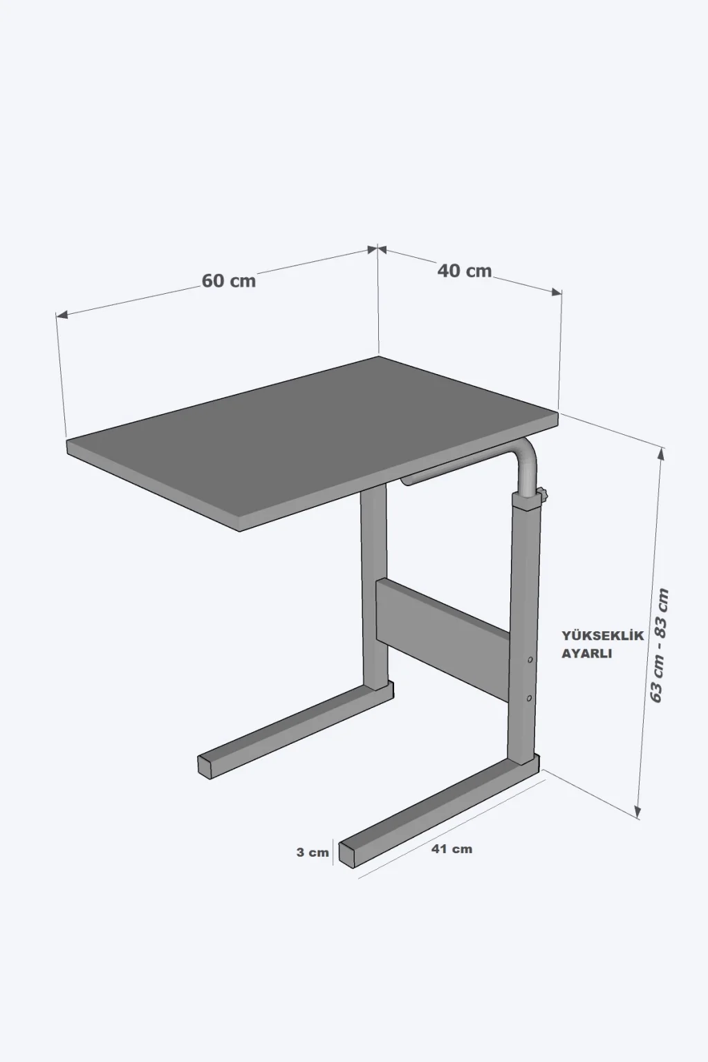 Üst Tabla Öçüsü En 60cm,Derinlik 40cm.Masa’nın ayarlanabilir yüksekliği 63-83cm.